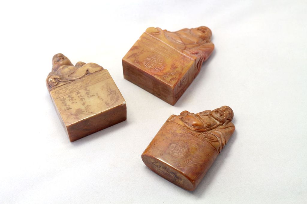 Animated carving of a laughing Buddha, it comes in 2 varieties, a rectangle and a oval shape.